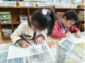 师:“还有很多其他的方法可以剪出小花朵,你们可以待会去尝试一下。”