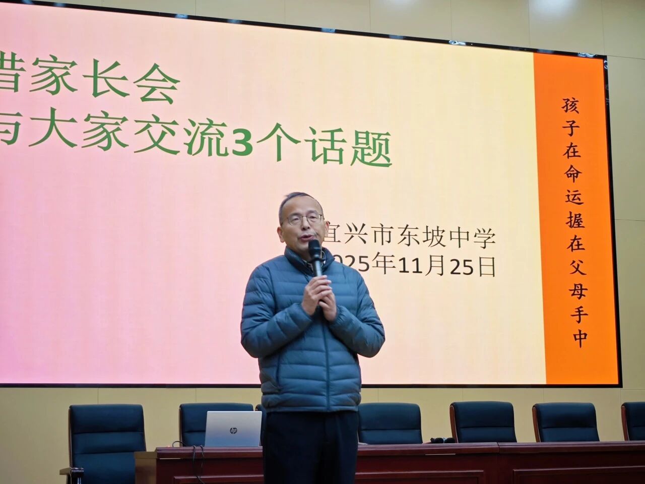为深化家校沟通,凝聚育人共识,2025年11月25日晚,宜兴市丁蜀镇东坡中学召开初一、初二年级期中家长会,通过精心组织的系列活动,搭建起家校协同育人的坚实桥梁。