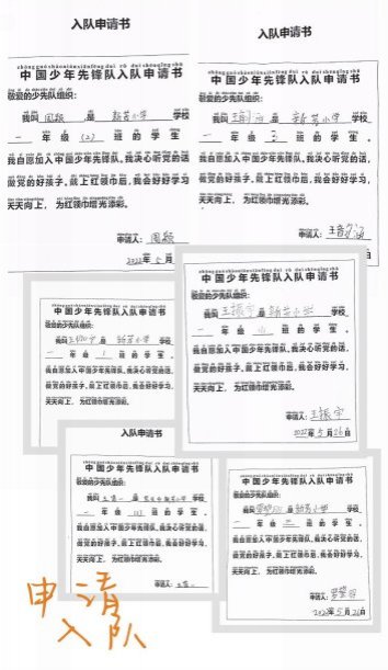 在此之前,孩子们在家长的指导下,一起填写了《入队申请书》。稚嫩的一笔一划下,书写着孩子们对中国少年先锋队的向往,也有家长对孩子的殷殷期盼。