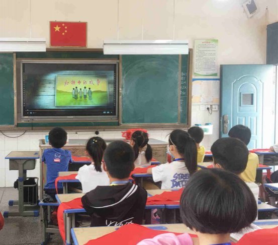 “什么是少先队?”“为什么要加入少先队?”为了解答孩子们对“少先队”的疑惑,大队部组织观看了视频《致敬少先队》,这让孩子们了解了党领导下的中国少年儿童运动史,也更深刻地理解了“红领巾”的含义。