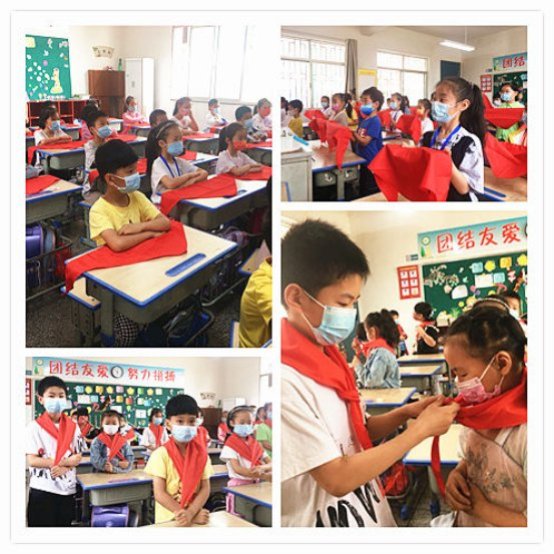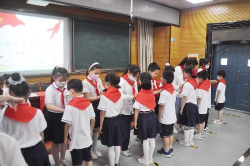 姜老师宣读了新队员名单。听到自己的名字后,新队员们骄傲地走上了台。高年级的中队长为他们佩戴了红领巾,鲜艳的红领巾映红了他们的脸庞。