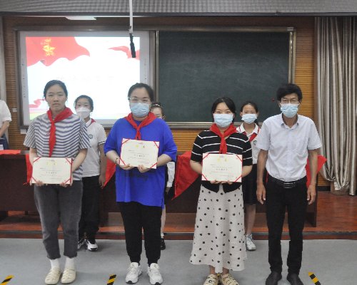 5月30日下午,入队仪式如期举行,队员们衣着整齐,用标准的队礼迎接飘扬的队旗。授中队旗、聘任中队辅导员,一年级各中队正式成立!