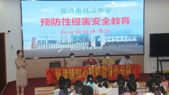 为增强未成年人预防性侵害意识,呵护未成年人健康成长,扎实做好未成年人保护工作。5月30日下午,宜兴市桃溪中学邀请“知心奶奶讲师团”到我校,来为学生进行“预防性侵害安全教育”活动讲座宣讲。讲座由政教处副主任宋丽娜主持。