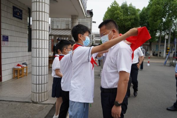 少先队员代表为王林俊书记等领导系上了鲜艳的红领巾,并致以少先队队礼,充分展示了徐舍小学学子积极向上的精神风貌。徐舍小学广大少先队员在党的领导下,将努力学习,奋发向上,为红领巾增添新的光彩。